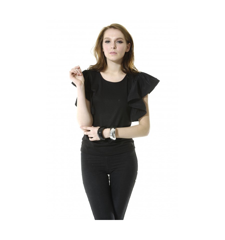 Short sleeved blouse with feminine draped sleeve detail.